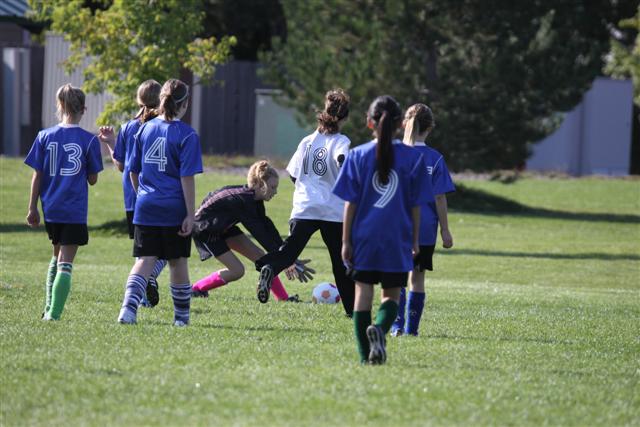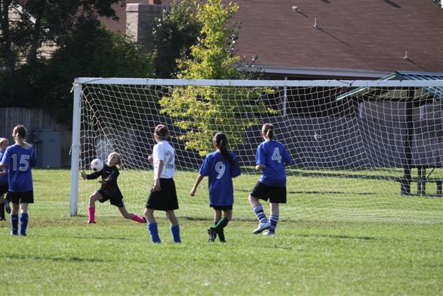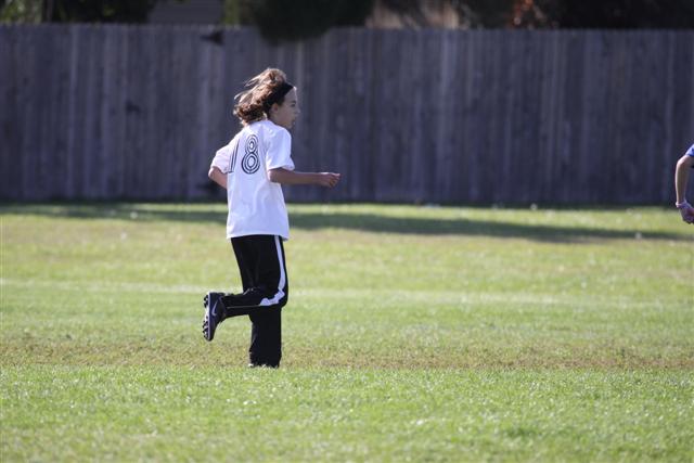 Here's some shots from Jen's soccer game today. After the 2 mile "Fun Run" yesterday, somehow she went out there and played an hour of soccer this morning. Jennifer's team won their third game in a row. I think like was like 8-0 or something insane like that.