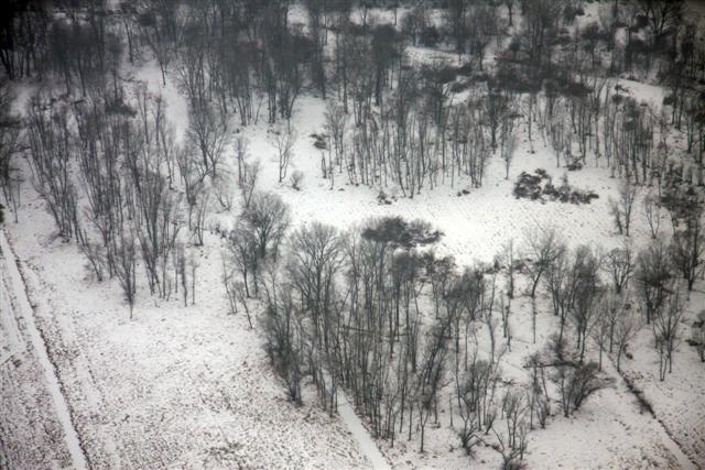 I drive past the southern airport boundary gazing across the bare woods and open fields. I know there's a frozen little canal that runs south from here toward the lakes - I've seen it from the planes when I'm landing. Flying over a place gives you a very different perspective.