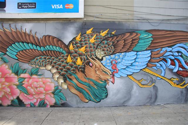 Above: One of Dan Plasma's dragons at 15th Street and Valencia Street/Caledonia Street in San Francisco's mission district.