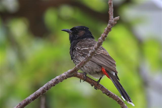 Above: Red-vented Bulbul (Pycnonotus cafer) at Sea Life Park on Oahu.