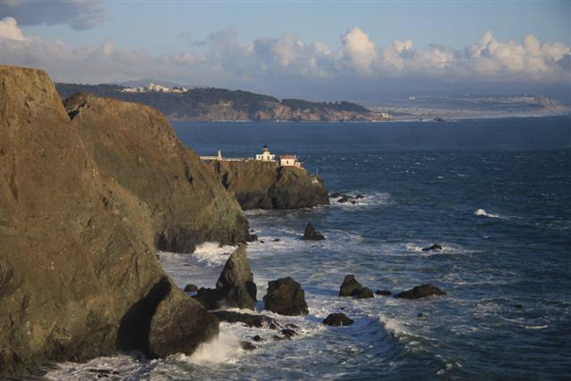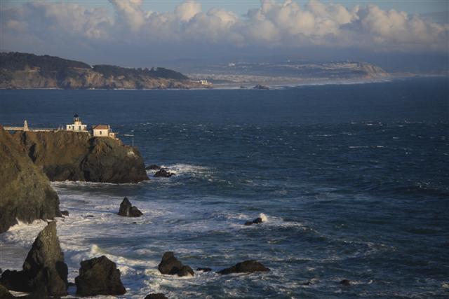 Above: The Point Bonita Lighthouse as viewed from Conzelman Road near Hawk Hill.