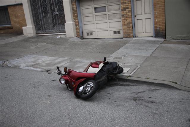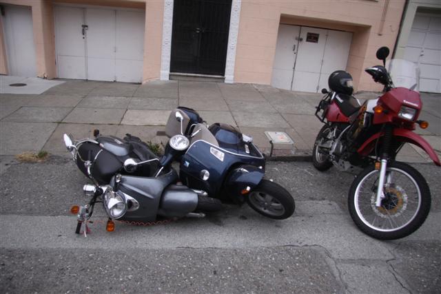I turn onto Folsom street and this woman comes racing up honking...perhaps not understanding that I have my own lane...she's honking at me and just I stay in my lane but the bike rises up like a stallion. It has it's own attitude. I am but a passenger, hanging on for dear life, as the bike rises up and rolls down the street on one wheel in a testosterone frenzy.
