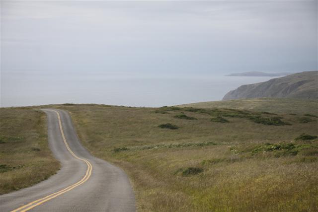 Above: Driving down Pierce Point Road toward McClures beach after descending the Inverness Ridge in Point Reyes National Seashore.