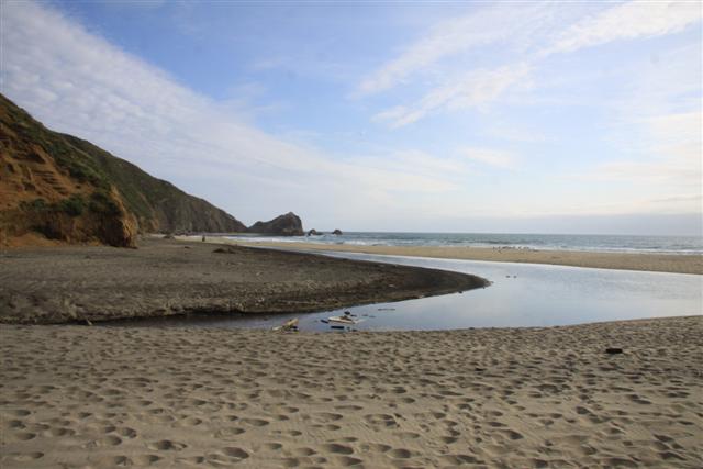 Above: Walker Creek flows into the Tomales Bay near the Pierce Point ranch. The Tomales Bay follows the San Andreas Fault.