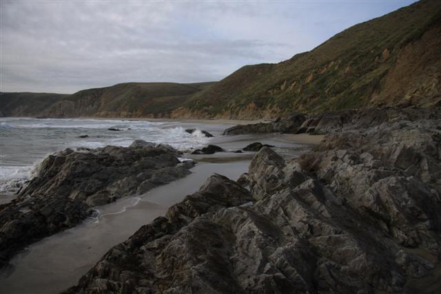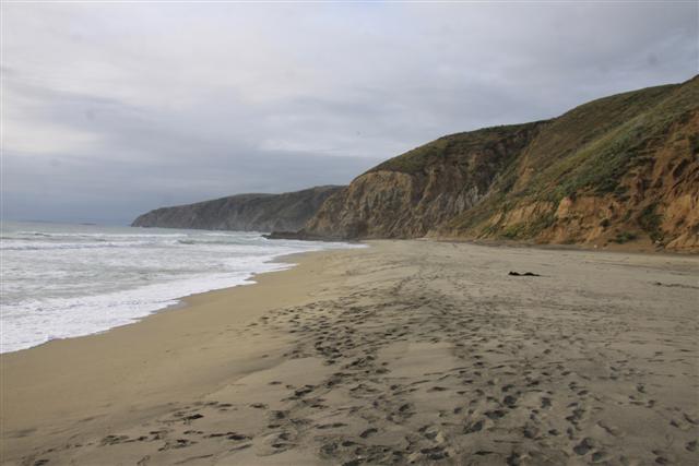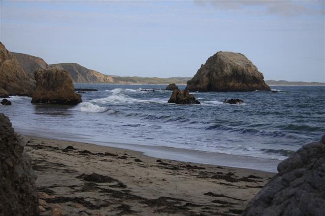 So I run out to Point Reyes and this time, I take a right turn at the Tomales Bay sign and I end up way on on the northern end of the isthmus and there's a parking lot and a little footpath down through the hills down to the beach and I sit for some time thinking....as Jim would say...."Do I or Don't I". That is the question.