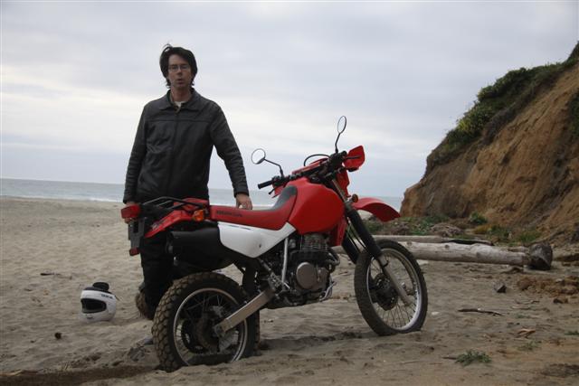 Finally, think...wtf? Seriously? I mean...who am I? Am I Rob Kiser or not? I'm driving my dirt bike to the beach, good sense be damned. So I start driving my Big Red Pig down this little footpath through a steep, twisting trail toward the beach. Now, if I mess up, I'll fall 20 feet down into a little creek. So I'm sort of carefully rolling down the trail as diligently as possible. I get down to the beach and immediately get stuck in the sand, which is OK because now the bike won't fall over.