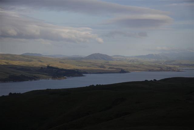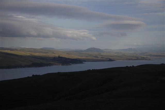 Above: Looking southeast across the Tomales Bay from a vantage point near the Pierce Point ranch. The far side of Tomales Bay is the Bolinas Ridge in the Golden Gate National Recreation Area.