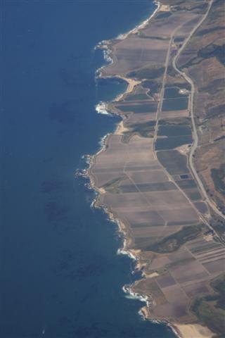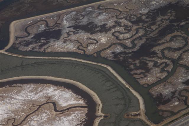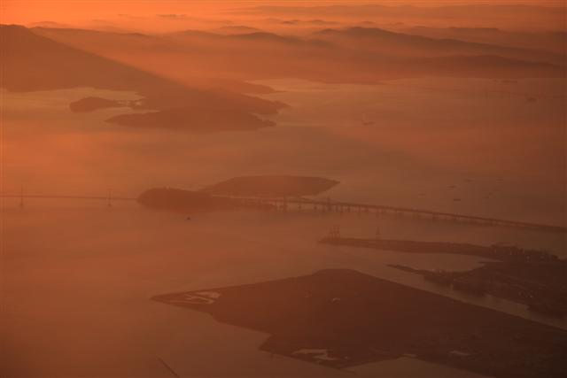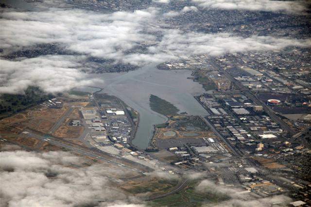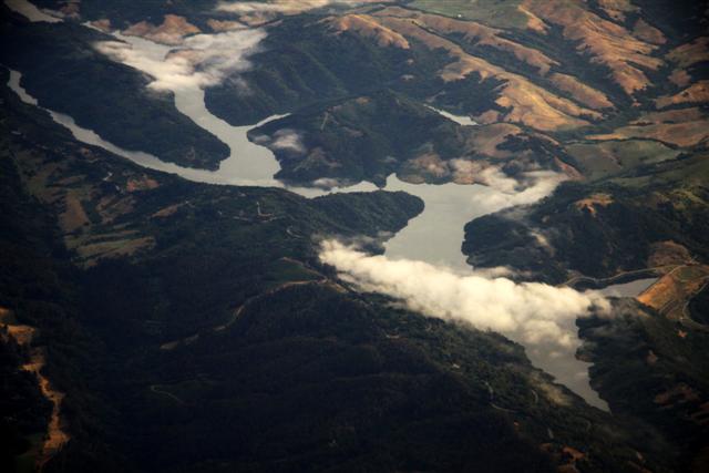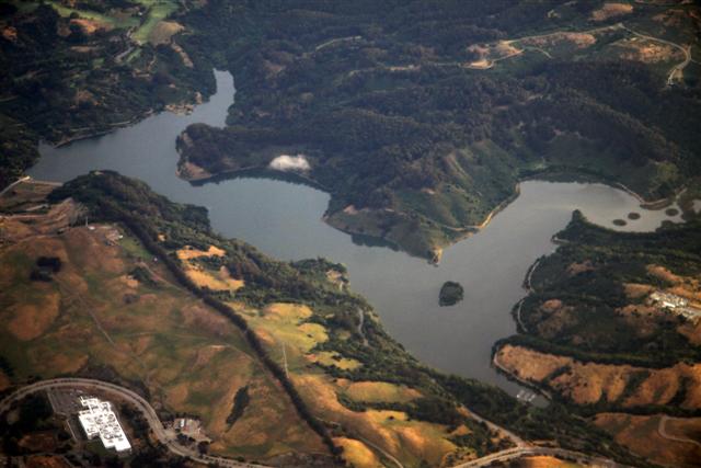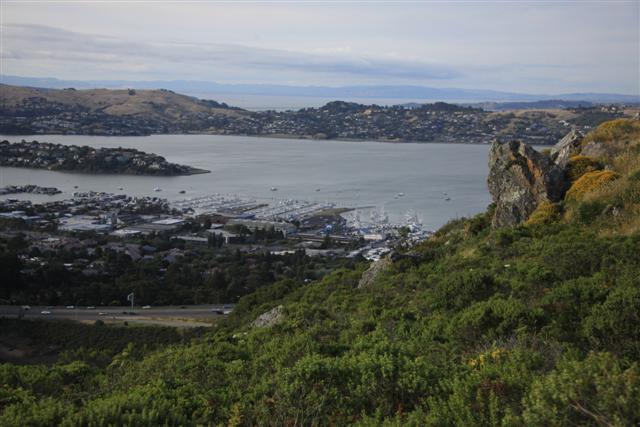 Above: Marin City, Sausalito, Richardson Bay, the Tiburon Peninsula, and in the far background, the Napa Valley.