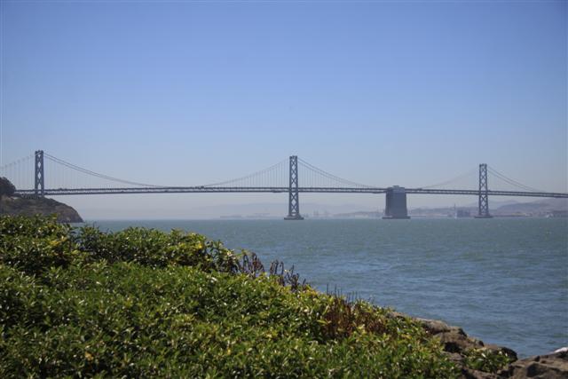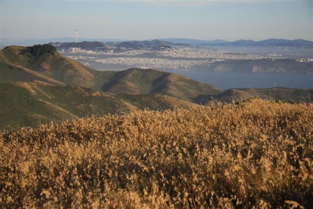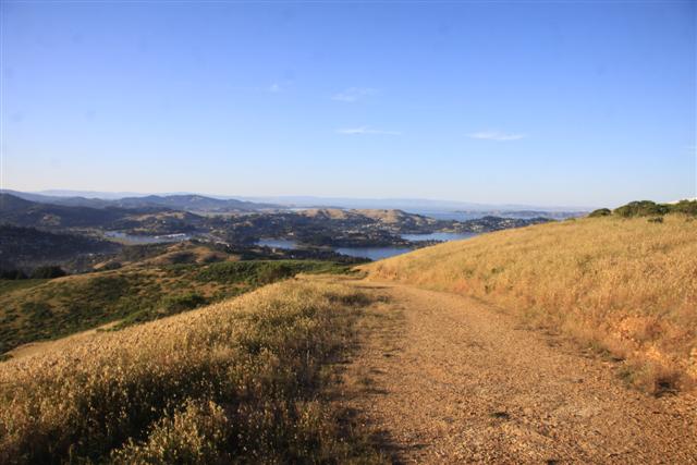 The trail climbs and forks and the trails are marked fairly well, but I'm not clear where they lead. I end up on this mountain pass with clear views of Marin City, Sausalito, Tiburon, and points beyond. The trails are well marked, but I can only guess at where they might end up. I switch onto another trail (Alta Trail) that appears to lead north and slightly downhill.