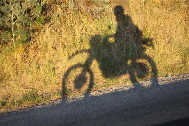The man is watching me closely. Studying my progress. As I descend, I decide to ride by him, so I just roll up to him and kill the bike.