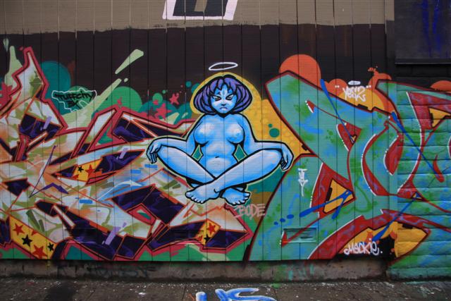 Above: Mural in Clarion Alley in San Francisco's Mission District. Update: According to Amandas Aorta, this piece is a memorial mural for artist Jeff Jones, created by Mark Bode and James o'Barr.