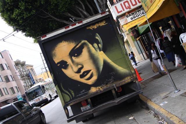 Above: Mural in Clarion Alley in San Francisco's Mission District. Update: According to Amandas Aorta, this piece is by Cuba.