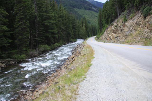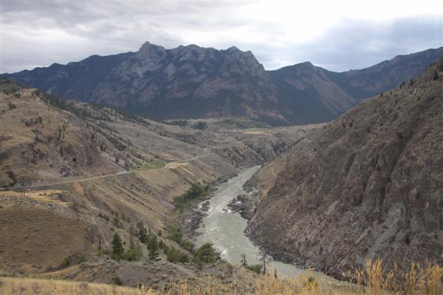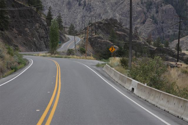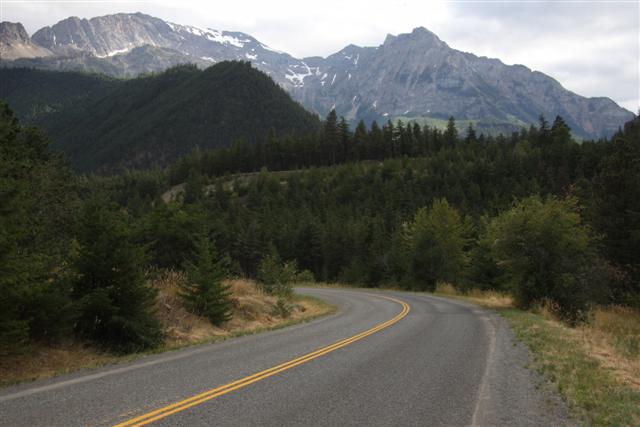 I really hadn't planned on getting any good photos today, because of the rain and all. Plus, I have so far to go, but now, everything's changed. Now I'm truly enjoying the ride. The sun is out and I find myself driving through the most beautiful mountain range I've ever seen. And, not just for a mile or two. But for two hundred and thirty miles. I'm racing through this canyon and it's just insane. It's indescribably beautiful. Closest thing I've ever see to it would be Jasper and Banff.