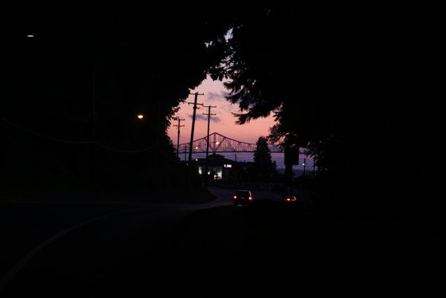 FInally, I roll into Astoria just as the last sunlight fades from the skies. But all the hotels say "No Vacancy". It's probably the weekend. I'm not even sure what day it is, honestly. As it turns out, there's some gay kite festival in Washington and the entire town is booked rock solid.