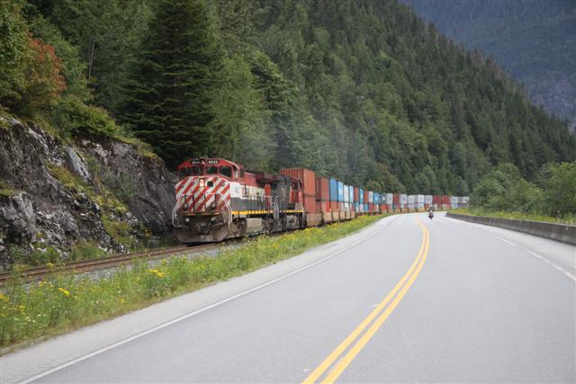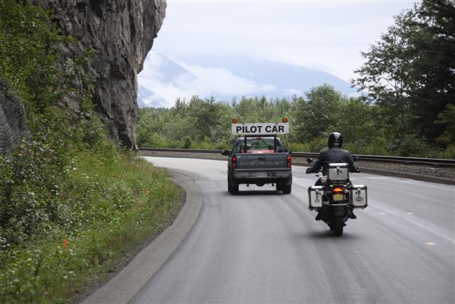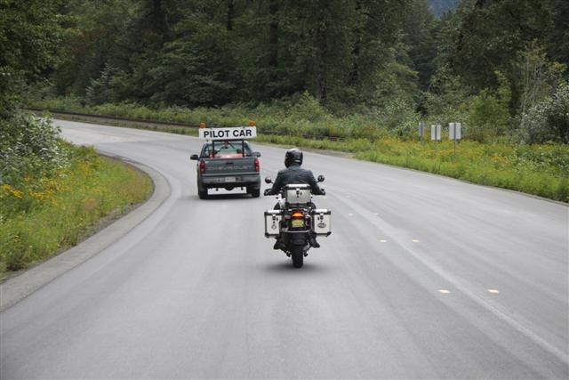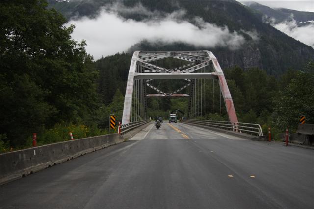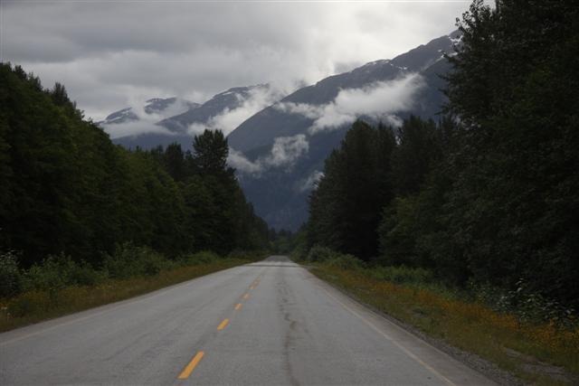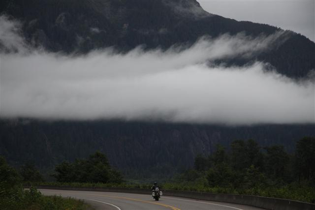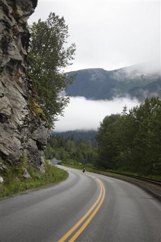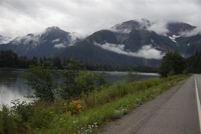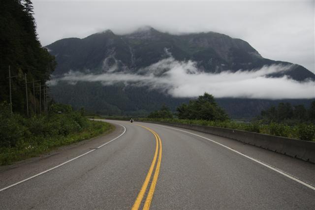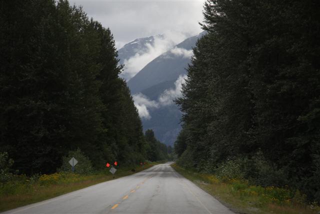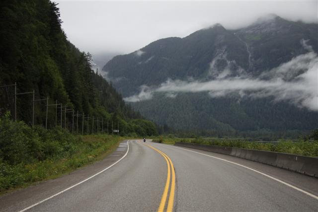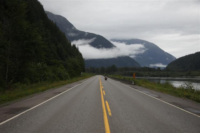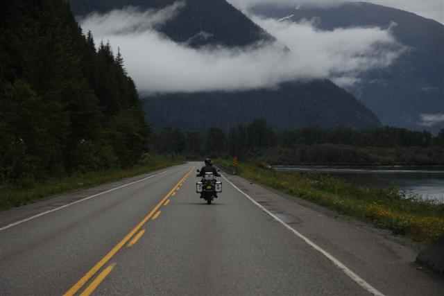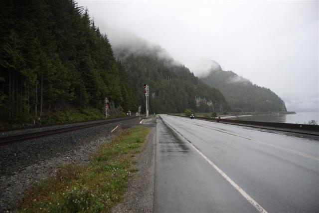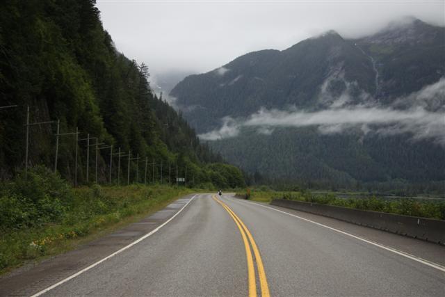 At 8:30 a.m., the alarm goes off and I wake up on Prince Rupert Island. I normally don't get up this early, as I only have to go 300 miles today. Doug has to go 400 though, so we meet downstairs and, in a light rain, we roll out of town at nine in the morning.