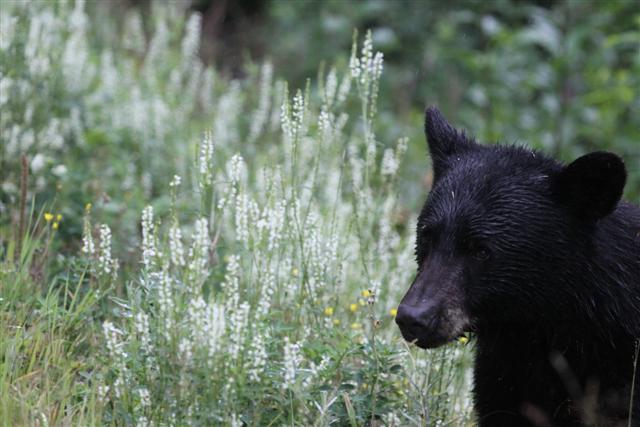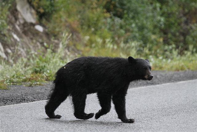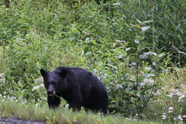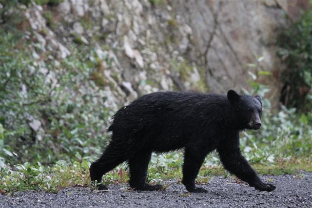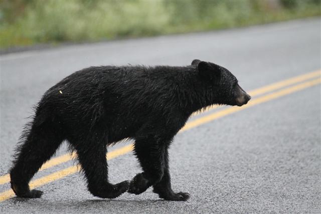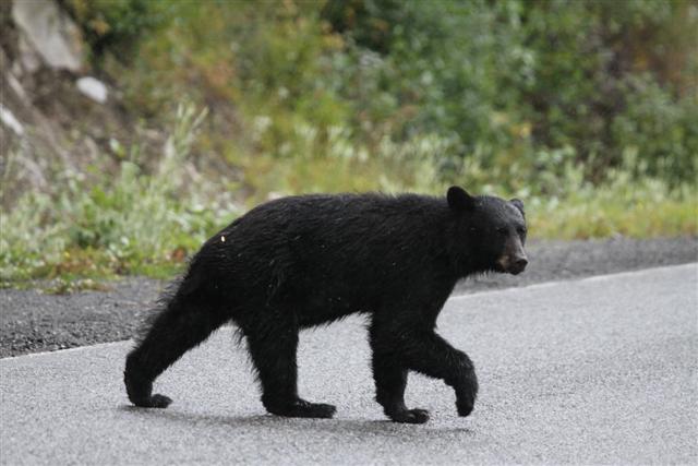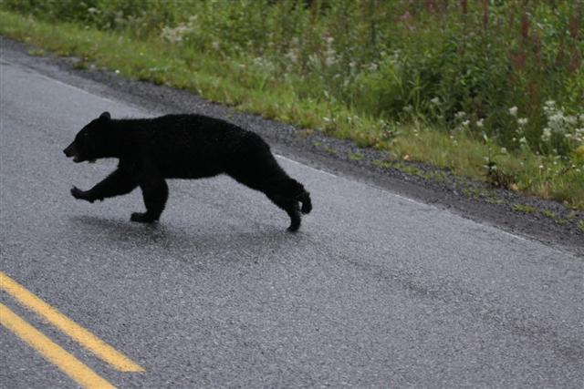 Driving up 37A, I notice a bear on the side of the road, and stopped to shoot him in my sock feet. I was really shocked. Jennifer had warned me that this road was chock full of bears, but I hadn't really imagined that I've have to take evasive action to keep from hitting them. There were bears everywhere. All along Highway 37A.
