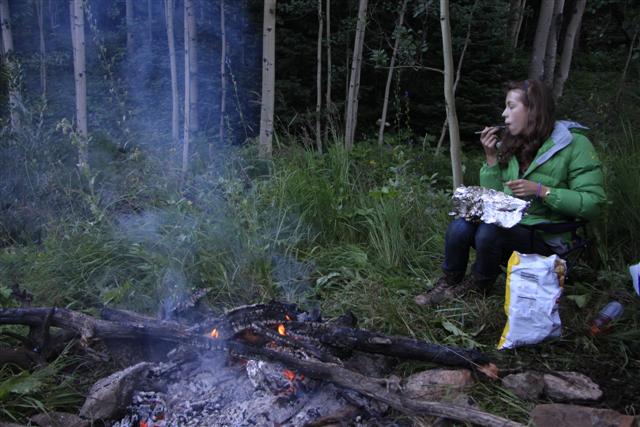 Over hoboes and smores, we invent the "International Smore Competition", and pretend to be judges, judging entrants from all over the earth. We're especially hard on the Russians, of course. At some point, we fall asleep and in the middle of the night, I awake to check out the stars. So bright up here in the shadow of the continental divide. You can see the Milky Way and it's so clear and bright and it makes you really wonder what it's all about.