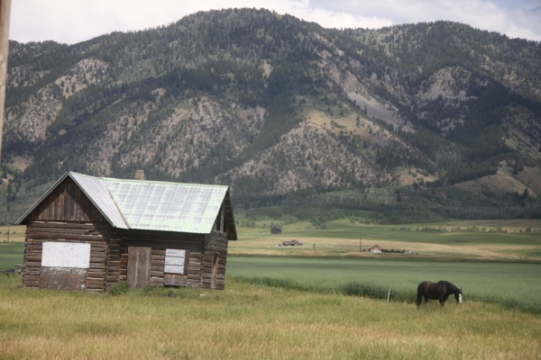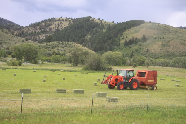 Now, rolling north through the Star Valley. Slowly, the desert becomes these lush green irrigated fields on both sides of the highway. The sprinklers lower the temperature and the green makes you feel like you want to live again.
