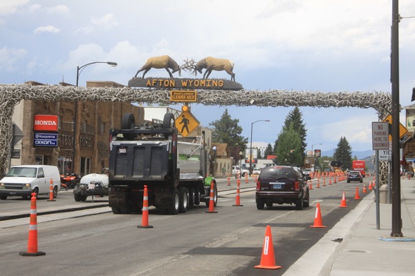 At Jackson, a quick shot of the elk antler arches around the park in the center of town. Now, north out of Jackson.