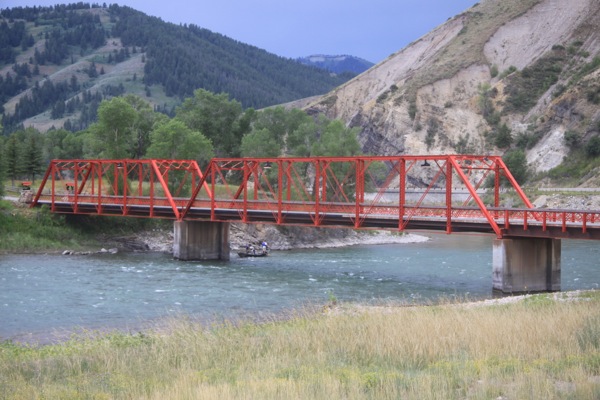 Now, turning at Alpine to follow the Snake River up the canyon. Beautiful canyon with lots of rafters. Steep cliffs. Tight turns. Pop out at the top of the canyon and you're in Jackson, Wyoming. Stop to gas up in Wyoming. It seems like my fuel tank is working now, but my gas mileage is not as good as it once was, with all the extra weight, I assume.