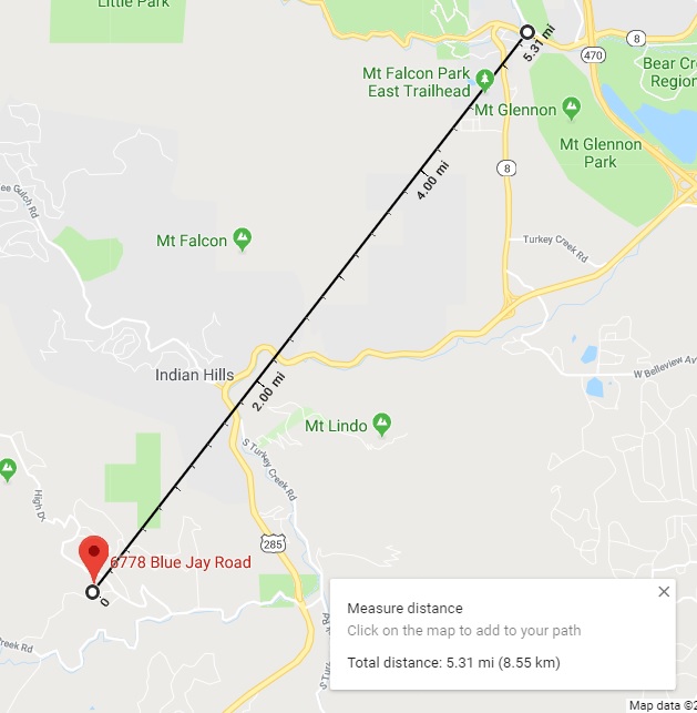 Digging through my still digital photographs from the era, I come to Jennifer's Red Rocks Fun Run of 10/1/2005. From looking at the photos, I see that her foot race started at this little pink cottage in Morrison, CO named the Horton House Bed & Breakfast. So, I'm using Google Street View to "walk" through the streets of Morrison to find where the "Horton House Bed & Breakfast" is located and....you guessed it....