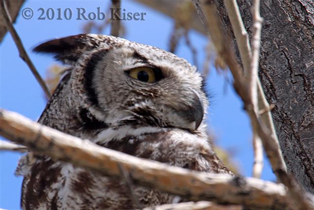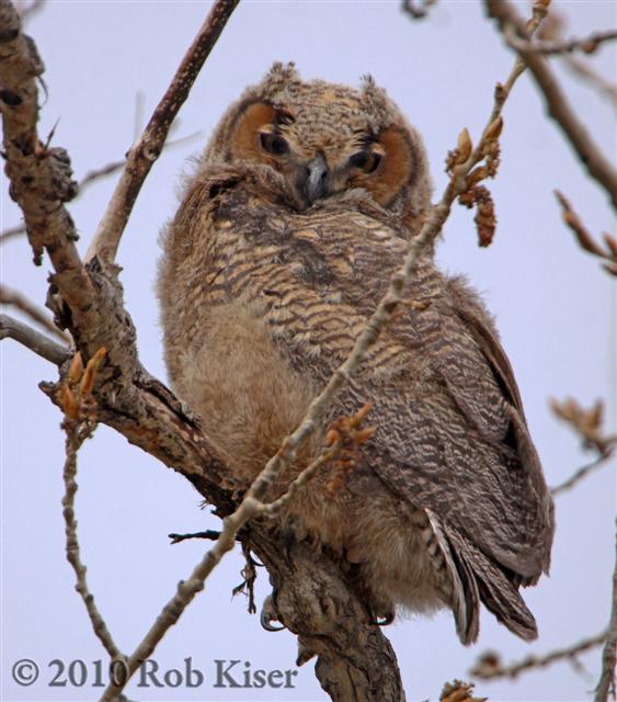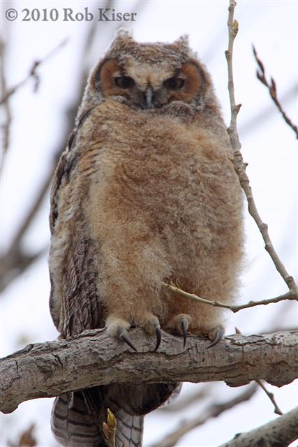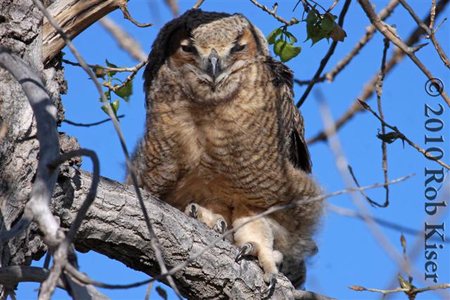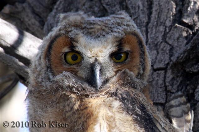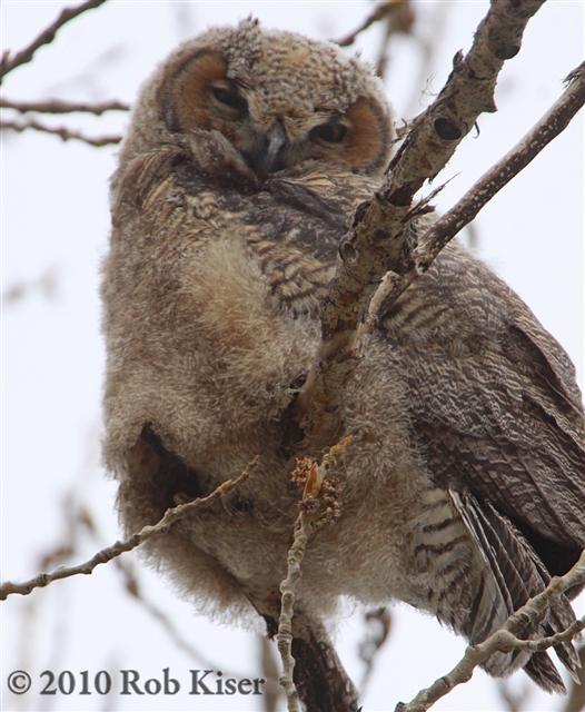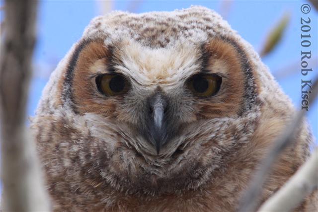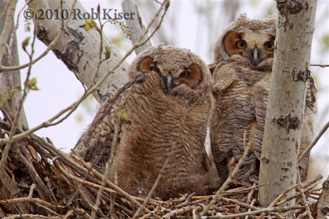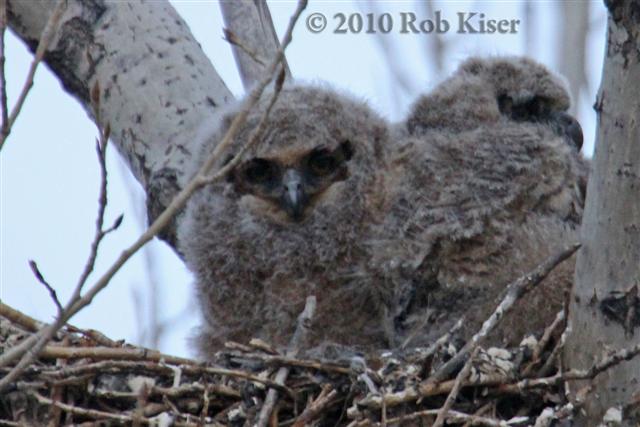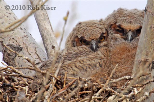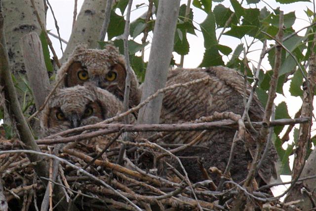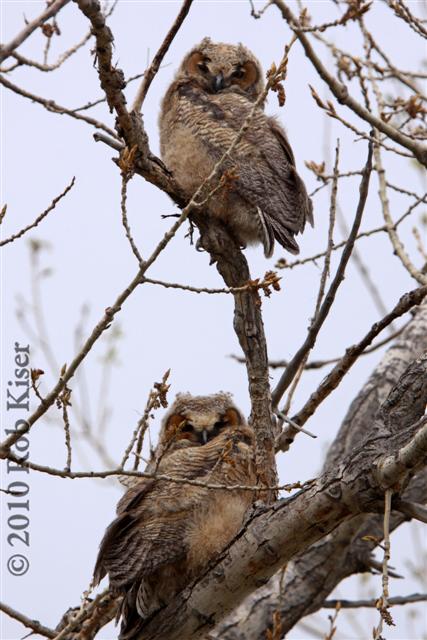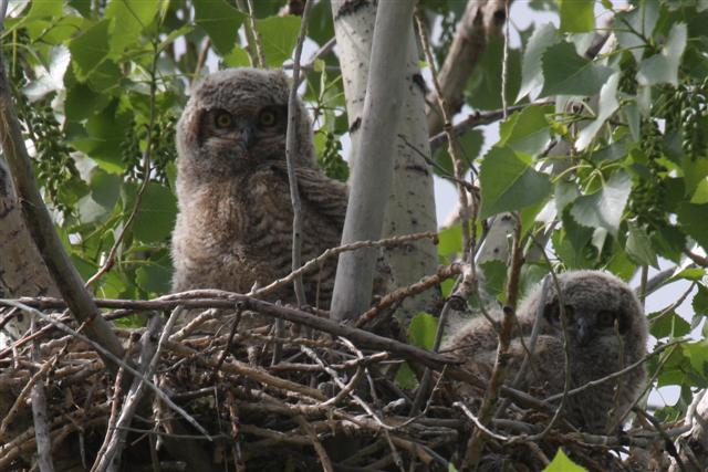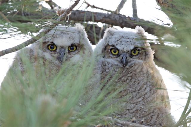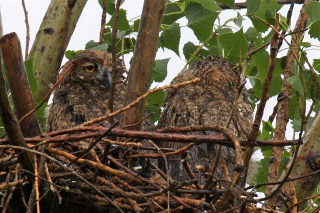 Two Great Horned owlets (Bubo virginianus). This is the best photo of baby owls I've taken this year. They're so big that the mother stays in an adjacent tree. My guess is that they'll fledge pretty soon.