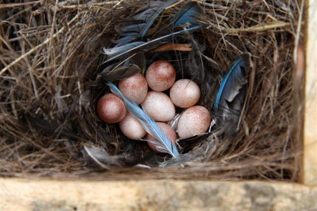 The House Wren has laid yet another egg for a total of eight. She's been laying an egg a day now for as long as I can remember.