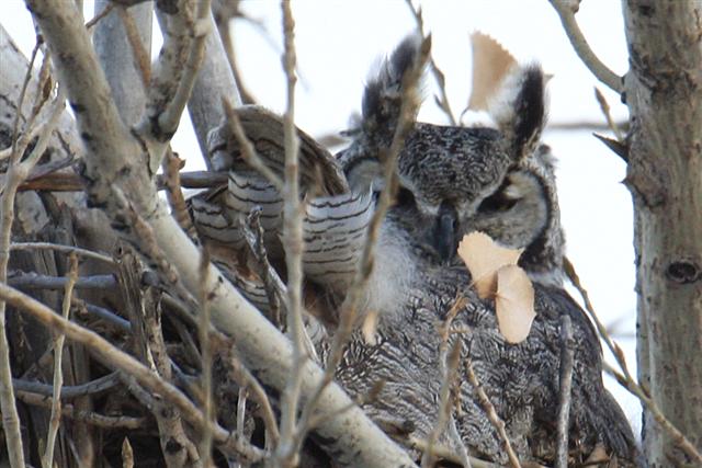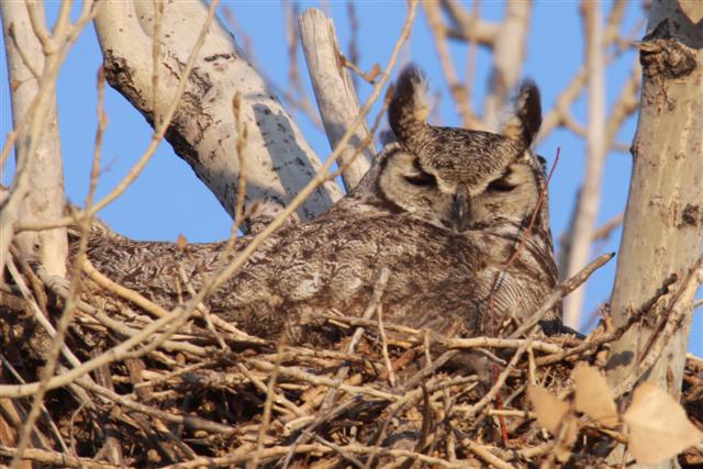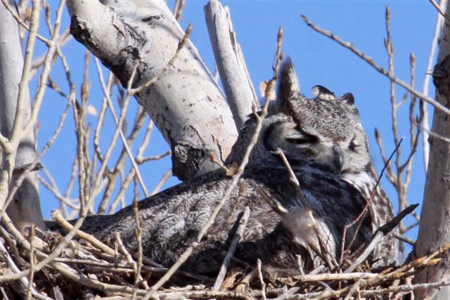 Above: Great Horned Owl (Bubo virginianus) incubating a clutch of eggs near Morrison, Colorado.